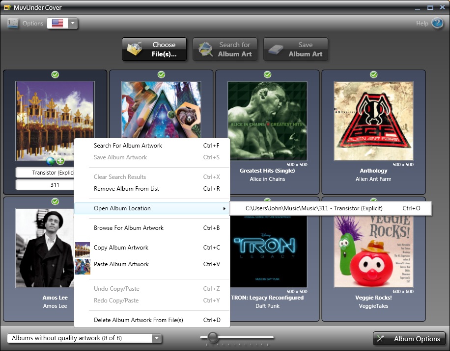 MuvUnder Cover - Album Right-Click Menu Screenshot