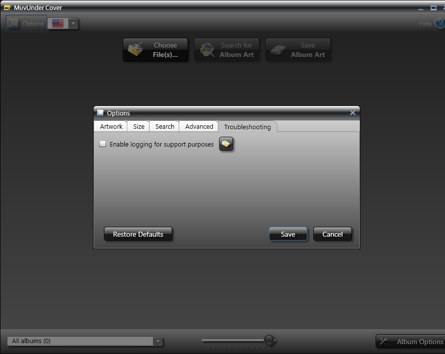 MuvUnder Cover - Options - Troubleshooting Screenshot