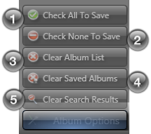 Alt+L | Album Options | Shows a menu for interacting with the album list with the following options: Check All To Save, Check None To Save, Clear Album List, and Clear Saved Albums. |