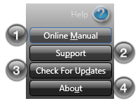 Alt+H | Help | Shows a menu with the following options: Online Manual, Support, Check For Updates, and About. |
