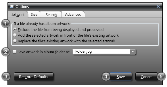 Album Artwork | Shows the currently selected album artwork that is selected to be saved into the album file(s). | ||